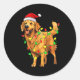 Golden Retriever Christmas Santa Hat Tree Lights P Classic Round Sticker