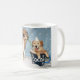 This mug features a golden retriever drinking a mug of hot cocoa, with the cocoa being a golden retriever puppy.