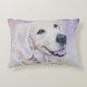 The cushion is small to medium sized. It can be washed. It is well constructed. The material used is pleasant and feels decent quality. It has a very slight plush feel which is good. It is well labelled and its care clearly stated. Theres nothing not to like about it. All in all a good item. The deduction of one star overall is due to long delays in delivery to the UK. It's not clear if this was due to Zazzle or somewhere else in the chain as I did not receive status updates of dispatch or progress. I cannot comment anymore on that other than to say that was our experience but it may not be the same for you. The printing was surprisingly close to what we were expecting. Its an art piece and on material so its hard to assess the precision of printing but it seems close to the original. The soft lines are reproductions of the original. The colour is a fair reflection of the painting. This was printed in the US and it looks like US quality. No issues.