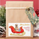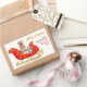 On these pretty Holiday decorative stickers, a Golden Retriever dog sits in a pretty red and gold decorative sleigh. Beside the dog sits gift packages tied with colourful bows. The gold script text at the right says "MERRY CHRISTMAS" and your custom text is in red. Perfect for your Christmas correspondence or gift packages! More retriever dog images, as well as other breeds, at Dog Village.