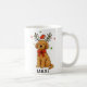 Brighten up your holiday mornings with this cheerful Personalized Golden Retriever Mug! The adorable illustration features a fluffy golden dog sitting happily, adorned with a festive Santa hat and antlers wrapped in colorful Christmas lights. A big red bow finishes the look, making it incredibly festive. Customize it with any name (e.g., your dog's name or a family name) to create a perfect, breed-specific gift for a Golden/Doodle owner, a thoughtful stocking stuffer, or a fun way to enjoy coffee.