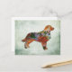 Golden Retriever Dog with a shabby floral design profile over a textured painted green background. A lovely gift for a pet owner.