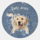Golden Retriever dog in blue denim hole Classic Round Sticker