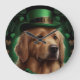 Golden Retriever Dog in St. Patrick's Day Large Clock