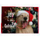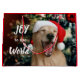 Add a little golden happiness to your gift giving this Christmas! This large gift bag features a photograph of a cute golden retriever dog wearing a Santa hat in front of a Christmas tree. Customizable text reads, "Joy to the World,"