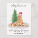 Send christmas greetings this holiday season with this Merry Christmas golden retriever in a santa dog and tree design card, and matching decor. This golden retriever holiday card features a watercolor dog in a santa hat and tree. Personalise with family name . This golden retriever christmas card will be a favourite among golden retriever lovers, dog lovers, and animal lovers. Visit our collection for matching golden retriever christmas cards, home decor, and gifts. COPYRIGHT © 2020 Judy Burrows, Black Dog Art - All Rights Reserved. Golden Retriever Dog Lover Cute Merry Christmas Holiday Postcard