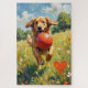 This bright, joyful illustration captures a single, smiling Golden Retriever bounding through a field while carrying a red ball that casts a perfect heart-shaped shadow. A fun and loving Valentine's Day gift for Golden owners.