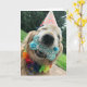 Send special birthday greetings with this cute card! Design features a photograph of a happy golden retriever dog who is wearing a party hat and holding a "happy birthday" bone-shaped cookie in his mouth. Customisable inside text reads, "Hope you enjoy!"