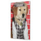 This clipboard features a golden retriever puppy all dressed up in a cute little outfit.