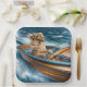 Golden Retriever Driving An Old Wooden Boat Paper Plate
