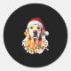Golden Retriever Funny dog Christmas Santa Hat lig Classic Round Sticker