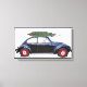 Impressionism of golden retriever dog transporting a Christmas pine tree on black retro car in snow
