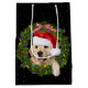 Golden Retriever in Christmas wreath Medium Gift Bag