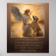 Memorialise a beloved Golden Retriever with this dog angel art poster. As a spiritual tribute to beloved pet who has crossed the rainbow bridge, a Golden Retriever offers a friendly paw to an angel in a vintage painting. The gold and bronze tones of the art evoke a sense of nostalgia and warmth, perfect for an original dog loss condolence or for adorning any space with timeless charm. Bring a touch of dog love into your home with this heavenly portrayal of the best dog ever. Personalise the dogs name and substitute your own text for a truly unique dog loss tribute. Available framed or unframed, or as a digital download.