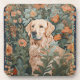 Elegant vintage floral design with a golden retriever at the centre, inspired by the style of William Morris.