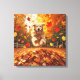 Golden Retriever Jumping In Leaf Pile Canvas Print
