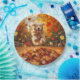 A golden retriever joyfully leaps into a pile of colourful autumn leaves creating a vibrant explosion of reds, yellows, and oranges