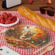 Golden Retriever Jumping In Leaf Pile Paper Plate