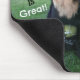 This mouse pad features a photograph of two smiling golden retriever dogs who are wearing sweatshirt hoodies outside. The quote reads, "Life is great! Dogs make it better!"