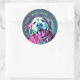 Golden Retriever Neon Colours Custom Name Address Classic Round Sticker