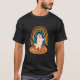 I give wanted to give this a 4 instead of a 5 because these Basic DARK T0shirts run unexpectedly SLIM or Narrow. Which is great if you do not have a potbelly, but I have a paunch. It isn't the shirt's fault that I've got a beer belly. The design and shirt itself is a quality cotton shirt. The color is more of a deep purple, but still a very pretty color. The Basic DARK T-shirts run a bit SLIMMER than the Basic Ts. The neck is a fraction narrower (or seems to be narrower) also. I'm a paunchy middle-aged woman and my neck is 12 inches (31cm) thick and the neckline fell about the same as in the photo of the man, and I had the desire to tug it a bit. So if you're a thick necked man or like loose shirts, be aware these are slimmer shirts. Once I get rid of my lockdown paunch it'll look great. The shirt washed well in cold water with no apparent bleeding. We don't have a dryer, so it hung dry. Did not shrink. Love the colors and the design. The design looks smaller on my shirt than it does on the model on-line. But still, it looks good on the shirt. The printing looks as it does on the model, just the size seems fractionally smaller. Washed garment in cold water, hung dry and design appeared unaffected.