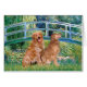 Lily Pond Bridge by Claude Monet, adapted to include two Golden Retrievers. With varying hues of green and blue, this serene scene is one of Monet's most popular paintings.
