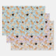 Cute Golden Retriever dogs with dark and light coats sit and stand with scattered dog bones and paw prints Wrapping Paper Sheets in blue, purple and grey.