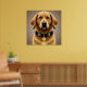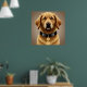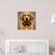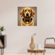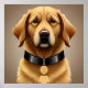 Artistic depiction of a golden retriever wearing a black collar with a golden tag. The calm expression and focus make it perfect for any representation of loyalty and friendship.