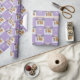 This pretty Christmas gift wrapping paper roll features three cute golden retriever puppies in the winter snow, in a watercolor style. The festive gift wrap is patterned with the dogs picture in a check design, with custom text and a lilac background. Ideal for dog lovers, the gift wrap can be personalised with a name or other words for the finishing touch.