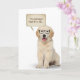 Cute golden retriever puppy wearing glasses on white with speech bubble for 51st birthday humour.