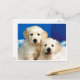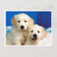 Brighten someone's day with a handwritten note! This adorable canine postcard features an image of a pair of blonde Golden Retriever puppy dogs highlighted with a blue background. They ready to help you send smiles to friends and family.