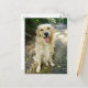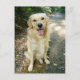 Aww...who can resist the sweet face of a Golden Retriever Puppy Dog? This cute canine postcard features a  portrait of a happy smiling Golden Retriever pup sitting on a woodsy trail.