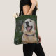 This tote bag features a golden retriever puppy playing among piles of bubbles.