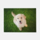 Golden Retriever Puppy on Grass Doormat