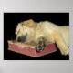 golden retriever puppy sleeping on book poster