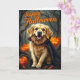 Golden Retriever Puppy with Pumpkins Halloween Card