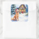 Golden Retriever Rustic Cabin Santa Hat Christmas Square Sticker