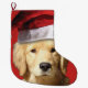 A Cute Golden Retriever wearing a Santa Claus Hat for Christmas