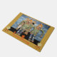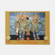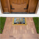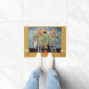 This door mat features golden retrievers dressed as scarecrows in a field of corn. The message reads, "Harvest Blessings". This mat would be perfect for your Thanksgiving or autumn decorating.