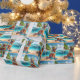 A golden retriever dog is happily submerged in the ocean water, wearing a snorkel and flippers