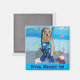 This magnet features a golden retriever dressed as a snorkeler in the ocean. The message reads, "Dive Right In!".
