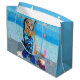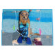 This gift bag features a golden retriever as a snorkeler diving in the ocean.
