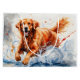 Adorable Golden Retriever dog running in swirling waves of water on this splash art large gift gab.