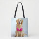 Golden Retriever Wearing a Pink Bra Tote Bag