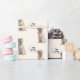 Golden retriever dog with black framed glasses and speech bubble for birthday.