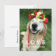 Tell someone how you feel about them with this cute postcard! Design features a photograph of a smiling golden retriever dog who is wearing a yellow and red crown of flowers with trailing ribbons. Text on front reads, "Love" and "Happy Valentine's Day," while customisable back text says, "Always and forever."