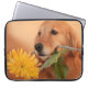 Here's a flower for you! This laptop sleeve features a photograph of a cute golden retriever dog holding a yellow mum in his mouth. There is room on the front to add your own custom text, if desired.