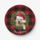 Golden retriever wreath on buffalo plaid paper plate