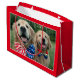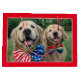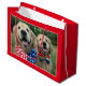 Happy 4th of July, USA! Show your patriotic spirit with this cute golden retriever gift bag! Design features a photograph of two dogs celebrating Independence Day with red, white, and blue bow ties.