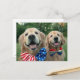 Happy 4th of July, USA! Show your patriotic spirit with this cute golden retriever post card! Design features a photograph of two dogs celebrating Independence Day with red, white, and blue bow ties.